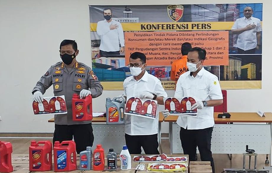 “Pelaku juga tidak memiliki kerja sama dengan para pemilik merek oli yang sudah terdaftar tersebut, dan juga oli yang dijual oleh pelaku tersebut juga tidak sesuai dengan standar mutu oli yang tertera pada label di botol oli tersebut,” sambungnya.