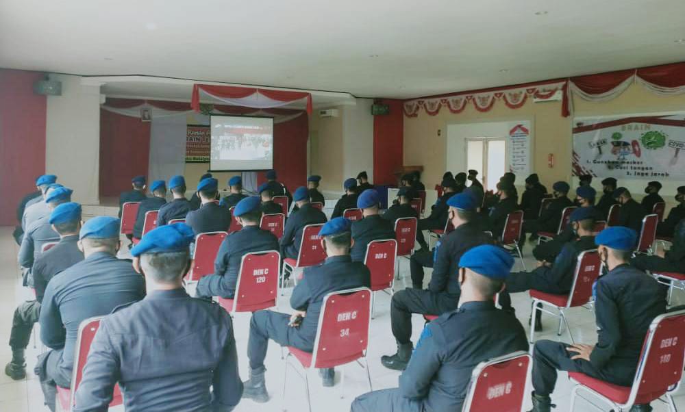 Agar tetap dapat merasakan hawa peringatan HUT ke-75 Korps Brimob Polri, Batalyon C Pelopor Satbrimob Polda Sulsel mengelar kegiatan nonton live streaming upacara peringatan HUT ke-75 Korps Brimob Polri di Aula Mako Batalyon C Pelopor jalan M.H. Thamrin no 70 Kota Watampone Kabupaten Bone. Dalam kegiatan nonton bersama ini, para personel Batalyon C Pelopor Satbrimob Polda Sulsel tetap menerapkan prokes pencegahan Covid 19 seperti pengecekan suhu tubuh sebelum memasuki aula yang digunakan untuk kegiatan nonton bersama,tetap mengenakan masker dan menjaga jarak selama kegiatan berlangsung.