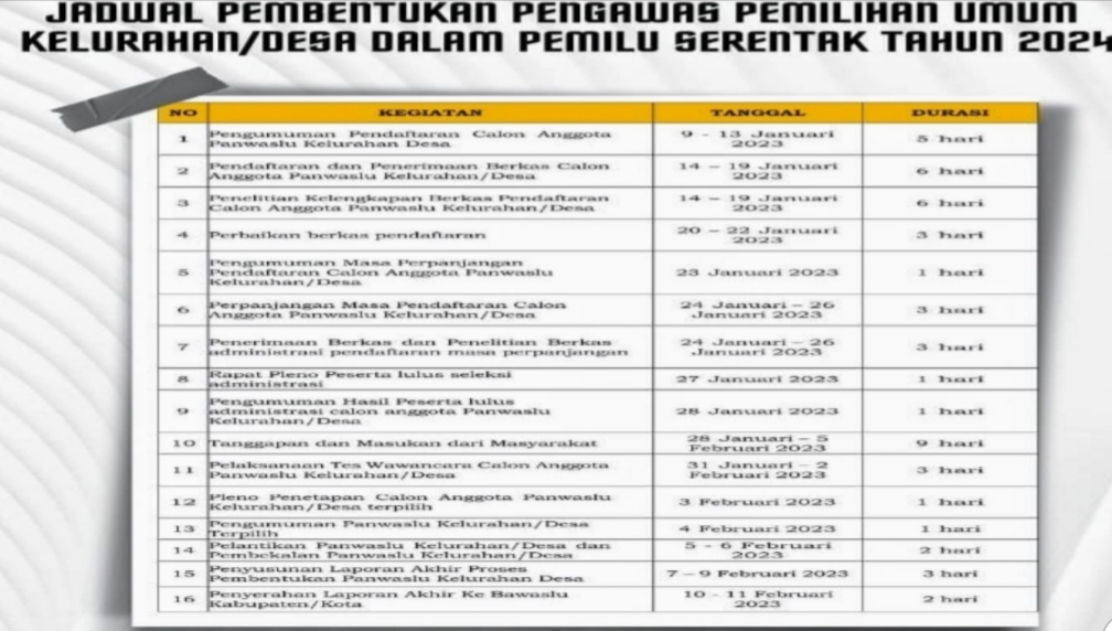 Sekedar diketahui bahwa pendaftaran dan penerimaan berkas calon anggota Panwaslu Kelurahan/Desa akan dibuka pada 14 sampai 19 Januari 2023 dan serentak di 8 Kecamatan di Kabupaten Soppeng.
