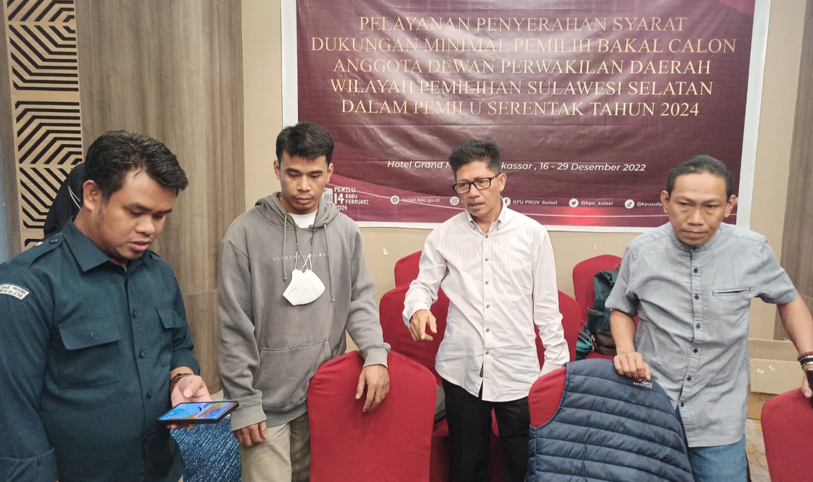 REPUBLIKNEWS.CO.ID, MAKASSAR – Badan Pengawas Pemilihan Umum (Bawaslu) Provinsi Sulawesi Selatan melakukan pengawasan tahapan penyerahan syarat dukungan minimal pemilih bakal calon Dewan Perwakilan Daerah (DPD) wilayah pemilihan Sulawesi Selatan yang digelar oleh KPU Provinsi Sulsel.