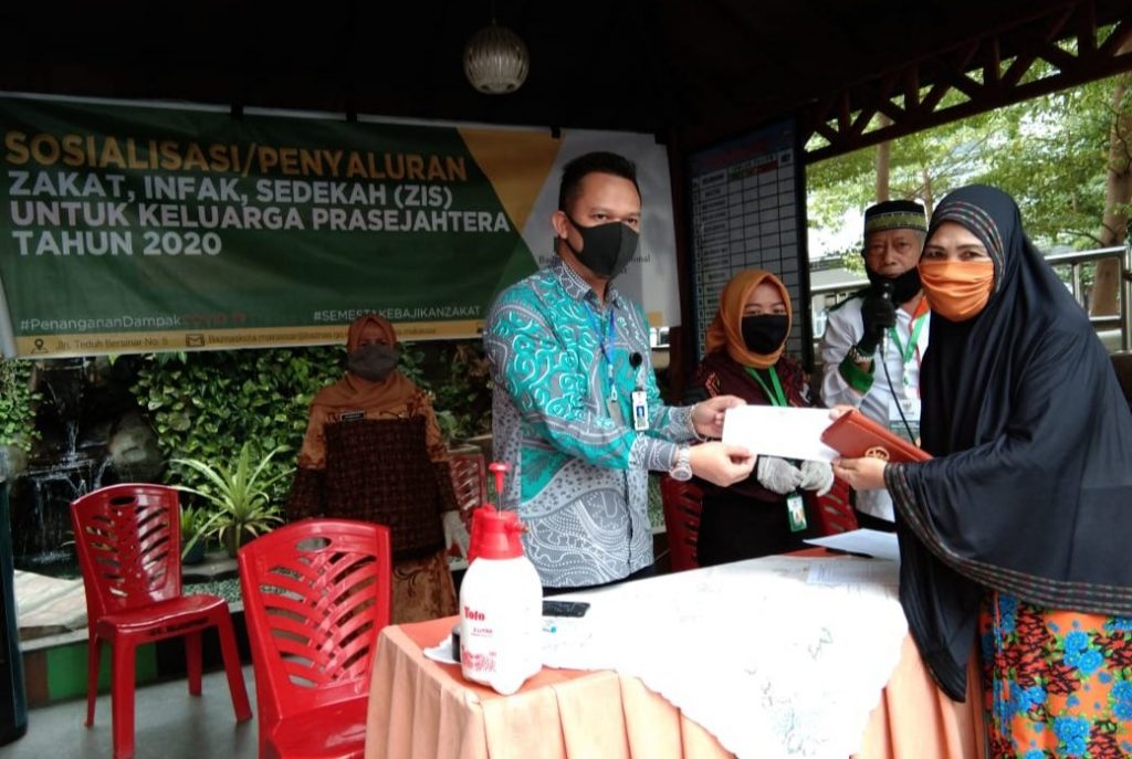 Badan Amil Zakat Nasional (Baznas) Kota Makassar menyalurkan Zakat kepada 140 mustahik di Posko Covid-19 Kantor Camat Makassar, Jalan Gunung Nona, pada Kamis (14/05/2020).
