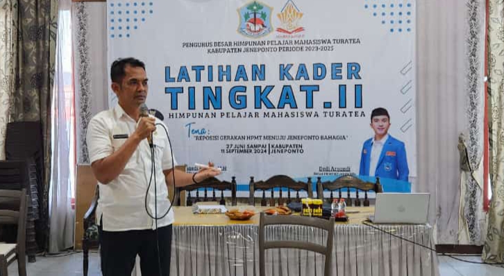 REPUBLIKNEWS.CO.ID, JENEPONTO – Kepala Dinas Komunikasi, Informatika dan Statistik (Kominfo) Kabupaten Jeneponto, Sulaeman Natsir menghadiri acara Latihan Kader II Himpunan Pelajar Mahasiswa Turatea (HPMT) Kabupaten Jeneponto, Rabu (11/9/2024).