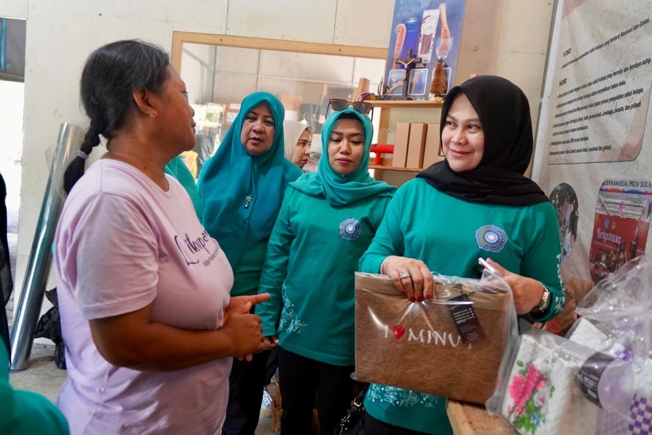 “Kami sangat senang dengan kehadiran ibu Ketua PKK Gowa yang mengunjungi tempat kami, kerajinan yang kami produksi ini berasal dari alam yang merupakan limbah sabut kelapa namun kami olah menjadi kerajinan khas Minahasa Utara seperti tas, sendal dan pernak-pernik lainnya,” ungkap Dyah.