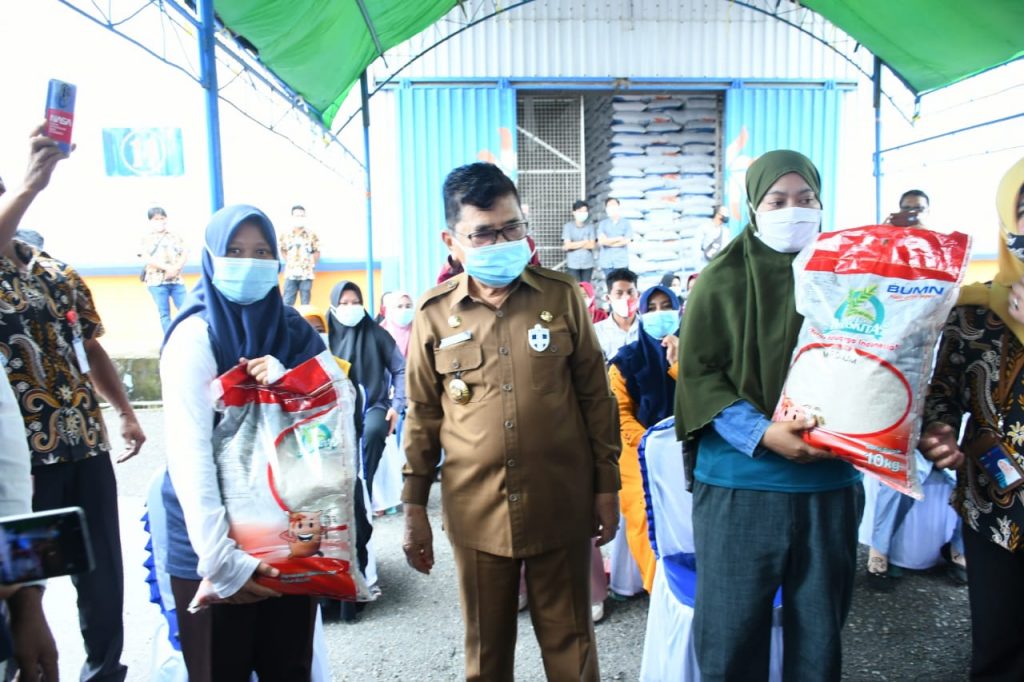 Kegiatan itu dirangkaikan penyerahan secara simbolis KPM PKH dan KPM BST oleh Walikota Palopo yang dilaksanakan di Gudang Bulog Kota Palopo, Kamis (22/72021).