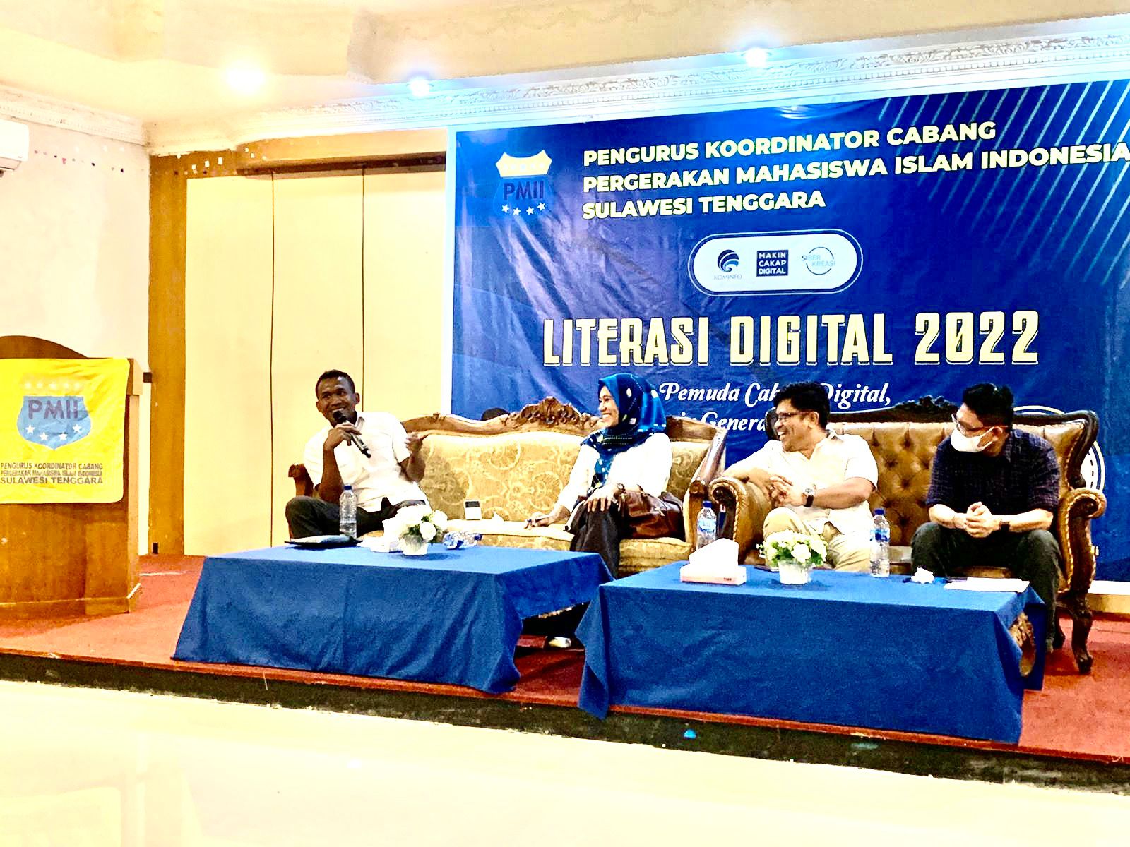 REPUBLIKNEWS.CO.ID, KENDARI – Pengurus Koordinator Cabang (PKC) Pergerakan Mahasiswa Islam Indonesia (PMII) Provinsi Sulawesi Tenggara (Sultra) bekerjasama dengan Menkominfo dan Siberkreasi menggelar dialog Literasi Digital bertajuk Pemuda Makin Cakap Digital, Sabtu (16/07/ 2022).