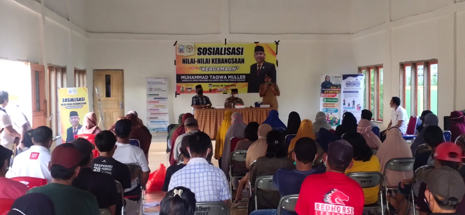 REPUBLIKNEWS.CO.ID, LUWU TIMUR- Anggota DPRD Provinsi Sulawesi Selatan dari Fraksi Golkar, Muhammad Taqwa Muller menggelar Sosialisasi Nilai-Nilai Kebangsaan dengan mengangkat tema tentang “Keagamaan”.