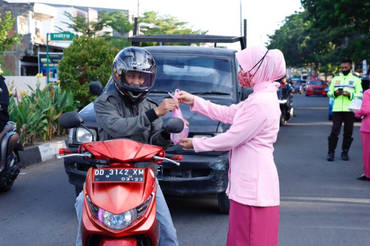 Suasana kebahagiaan sangat terlihat, senyum dari pengguna jalan dan Bhayangkari melengkapi kegiatan berbagi tersebut.