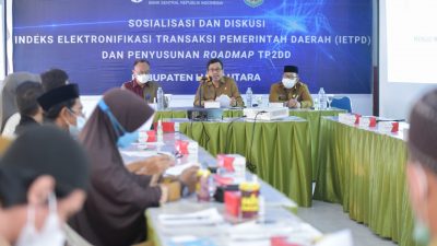 REPUBLIKNEWS.CO.ID,MASAMBA — Bank Indonesia (BI) Kanwil Provinsi Sulawesi Selatan bekerjasama dengan Pemerintah Kabupaten Luwu Utara, menggelar Sosialisasi dan Diskusi Indeks Elektronifikasi Transaksi Pemerintah Daerah (IETPD) dan Penyusunan Roadmap Tim Percepatan dan Perluasan Digitalisasi Daerah (TP2DD), Senin (27/9/2021) di Aula Hotel Elegant, Masamba.