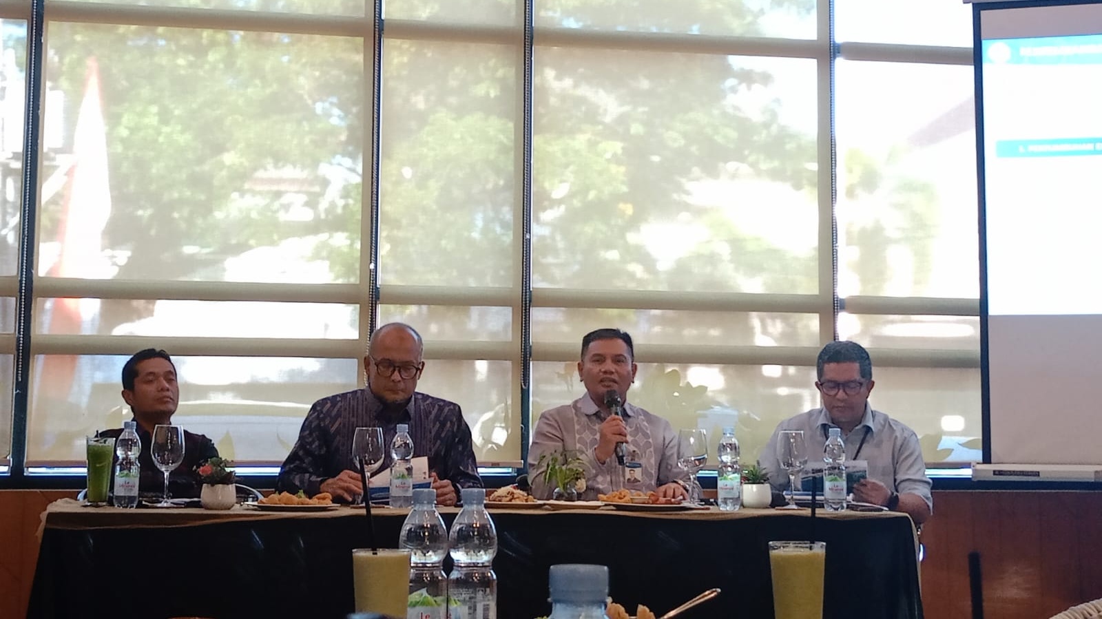 Deputi Kepala Perwakilan Bank Indonesia Provinsi Sulawesi Selatan Wahyu Purnama A (kedua kanan) saat memberikan pernyataan terkait pengembangan ekonomi halal di BI Bareng Media, di Grind & Pull, Makassar, Kamis, (15/08/2024). (Dok. Chaerani/Republiknews.co.id)