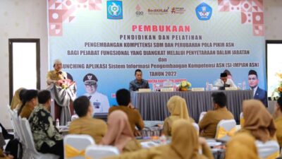 Pembukaan pelatihan tersebut dirangkaikan Launching Aplikasi Sistem Informasi Pengembangan Kompetensi ASN (Si Impian ASN) diaula Maryam Palace, Senin (01/08/2022).