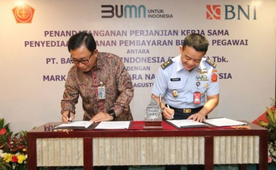 Ditandai dengan penandatanganan Perjanjian Kerja Sama (PKS) oleh Kapusku TNI Marsekal Muda TNI Danang Hadiwibowo dengan Direktur Hubungan Kelembagaan BNI Sis Apik Wijayanto.