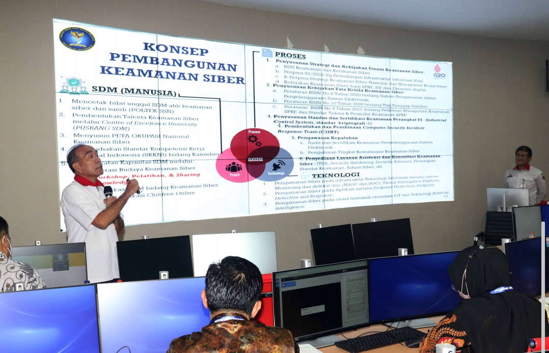 REPUBLIKNEWS.CO.ID, SOLO — Kepala Badan Siber dan Sandi Negara (BSSN) Letjen TNI (Purn) Hinsa Siburian memberikan paparan pada Pelatihan Keamanan Siber Born to Defense di Solo Techno Park, Kota Solo, Jawa Tengah, Jumat (10/06/2022).