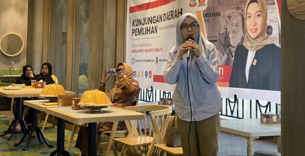 Setelah turun meninjau daerah pemilihan, Budi Hastuti kemudian melakukan pertemuan dengan warga di Rumah Makan Kaya Rempah, Jl Hertasning Baru, Makassar, Selasa (5/12/2023).