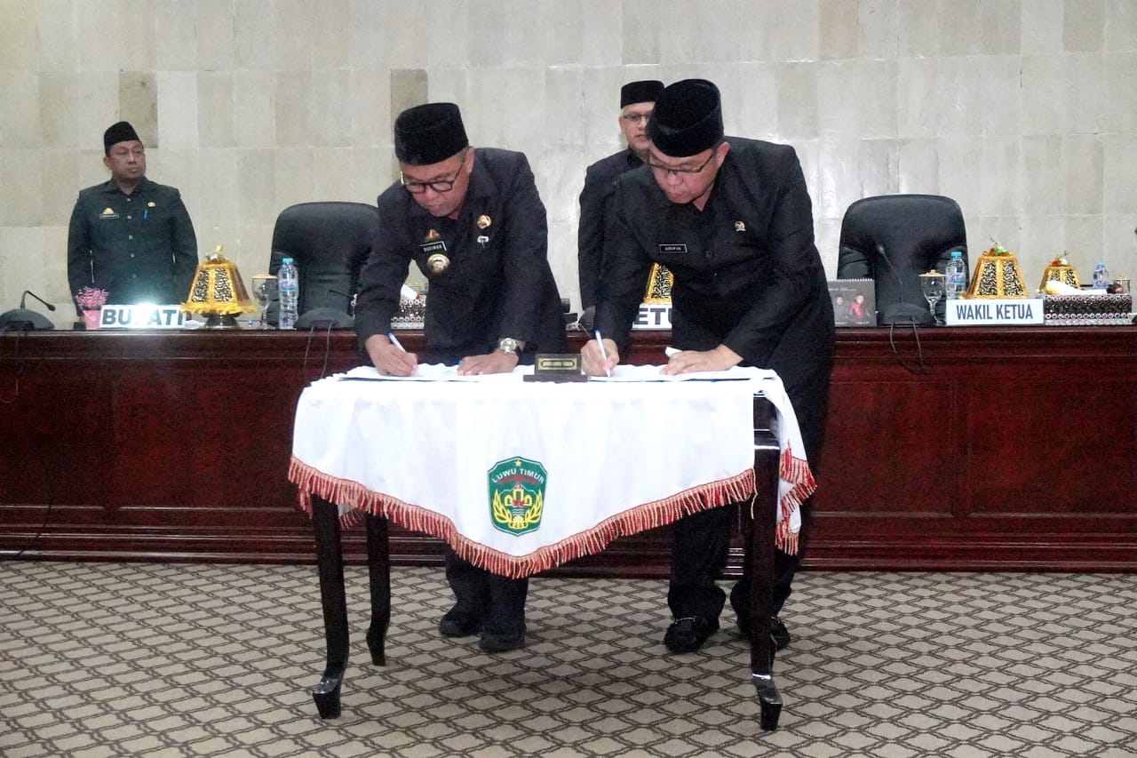 Penandatangan persetujuan bersama dilakukan dalam Rapat Paripurna yang berlangsung di Ruang Sidang DPRD Kabupaten Luwu Timur, Rabu (23/11/2022).
