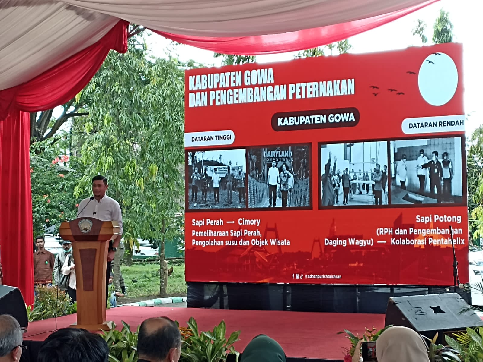 Menurutnya, dengan kondisi wilayah Kabupaten Gowa yang memiliki dataran rendah dan dataran tinggi sangat memiliki potensi besar dalam pengembangan sektor peternakan. Dimana saat ini untuk di wilayah dataran tinggi Pemerintah Kabupaten Gowa bekerjasama PT Cimory melakukan pengembangan sapi perah di Kecamatan Tombolo Pao melalui perantaraan Kementrian Pertanian (Kementan) RI.