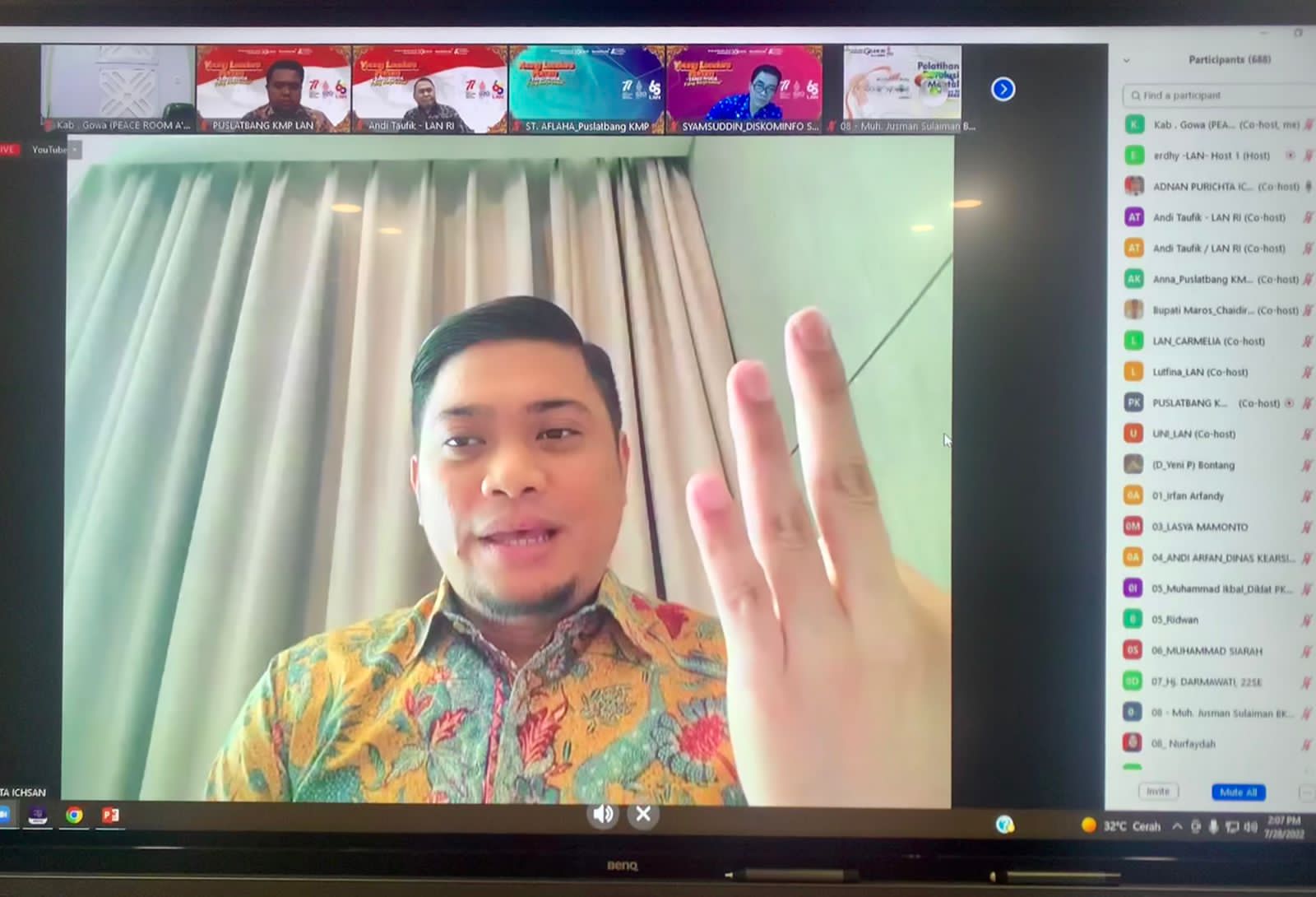 REPUBLIKNEWS.CO.ID, GOWA- Bupati Gowa Adnan Purichta Ichsan membahas empat program prioritas pembangunan di daerahnya. Hal ini dibahas saat menjadi narasumber di Young Leaders Forum yang diselenggarakan Pusat Pelatihan dan Pengembangan dan Kajian Manajemen Pemerintahan (Puslatbang KMP) Lembaga Administrasi Negara (LAN) RI Makassar secara virtual.