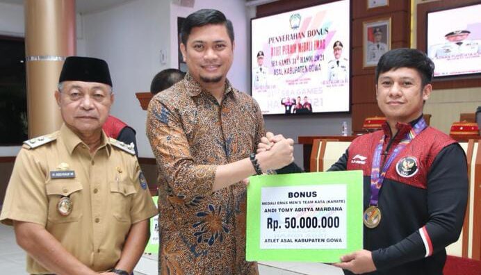 REPUBLIKNEWS.CO.ID, GOWA — Bupati Gowa Adnan Purichta Ichsan menyerahkan bonus kepada atlet asal Kabupaten Gowa yang berhasil meraih medali emas di Ajang Sea Games 2021 Vietnam.