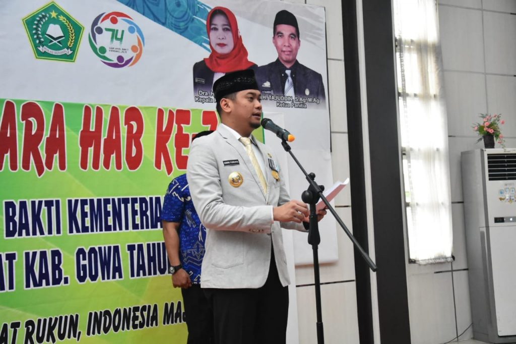 Hal ini diungkapkan Bupati Gowa Adnan Purichta Ichsan, saat membacakan sambutan seragam Menteri Agama RI Fachrul Razi saat bertindak sebagai Inspektur Upacara Hari Bakti ke-74 Kementerian Agama Tingkat Kabupaten Gowa Tahun 2020 di Aula Al Amanah, Kantor Kementrian Agama Kabupaten Gowa, Jumat, (03/01/2020).