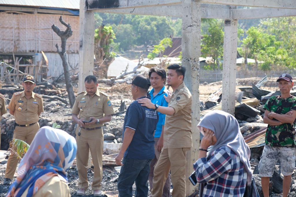 Selain meninjau lokasi, Adnan juga terlihat sibuk menelpone Kepala Dinas Sosial, H. Syamsuddin Bidol memberikan instruksi langkah membantu korban kebakaran.