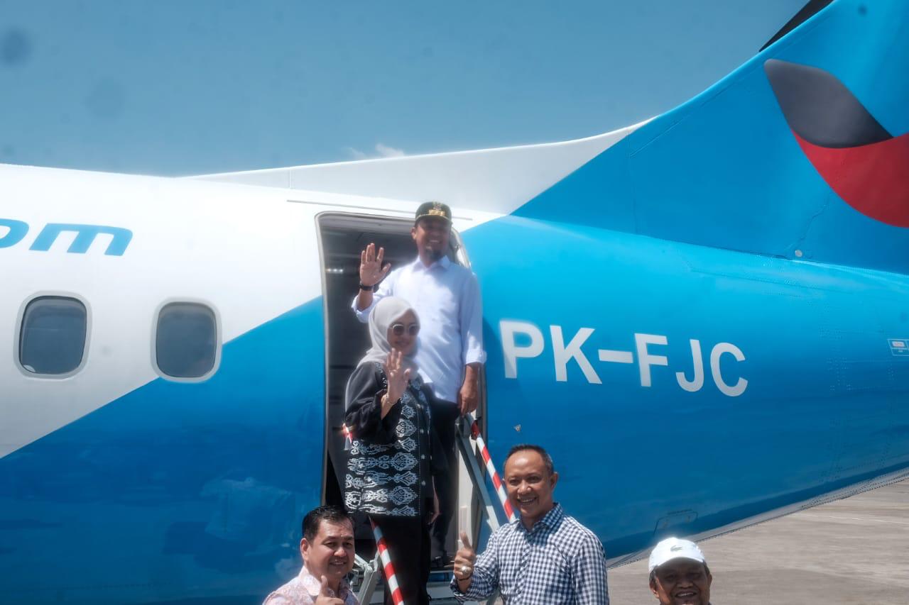 REPUBLIKNEWS.CO.ID, GOWA — Bupati Gowa, Sitti Husniah Talenrang ikut menyaksikan langsung penerbangan perdana ATR 72-500 Fly Jaya Airlines dari Makassar ke Selayar atau Makassar ke Bone, di Gate 6 Bandara Internasional Sultan Hasanuddin, Kabupaten Maros.