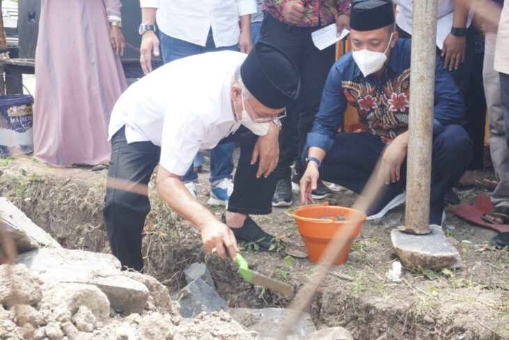 REPUBLIKNEWS.CO.ID, JENEPONTO — Bupati Jeneponto Iksan Iskandar, didampingi Wakil Bupati Paris Yasir, memberikan sambutan pada peletakan batu pertama pembagunan Masjid Nursyamsiah Sarro, di Lingkungan Mangambang Kelurahan Empoang Utara Kecamatan Binamu, Selasa (01/02/2022).