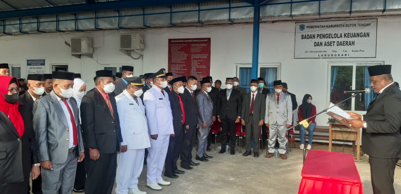 REPUBLIKNEWS.CO.ID, BUTON TENGAH-Bupati Buton Tengah (Buteng) H. Samahuddin, SE melakukan pelantikan dan pengambilan sumpah jabatan beberapa pejabat pimpinan tinggi pratama lingkup Pemda Buteng di Pelataran kantor BKPSDM, Kamis (17/02/2022).