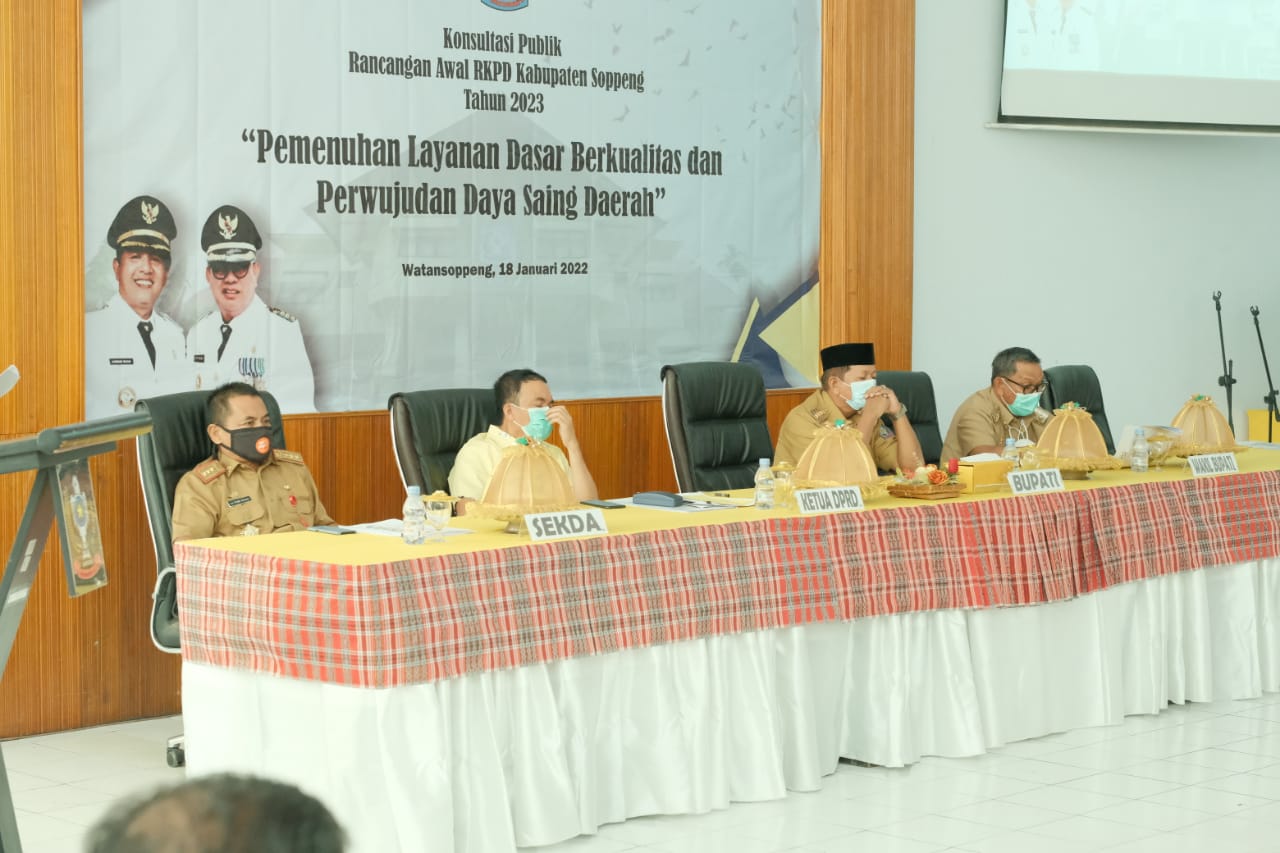 REPUBLIKNEWS.CO.ID, SOPPENG — Konsultasi publik rancangan awal Rencana Kerja Pemerintah Daerah (RKPD) Kabupaten Soppeng untuk tahun 2023 mendatang digelar dial Aula Kantor Gabungan Dinas Lingkup Pemkab Soppeng, Selasa (18/01/2022).