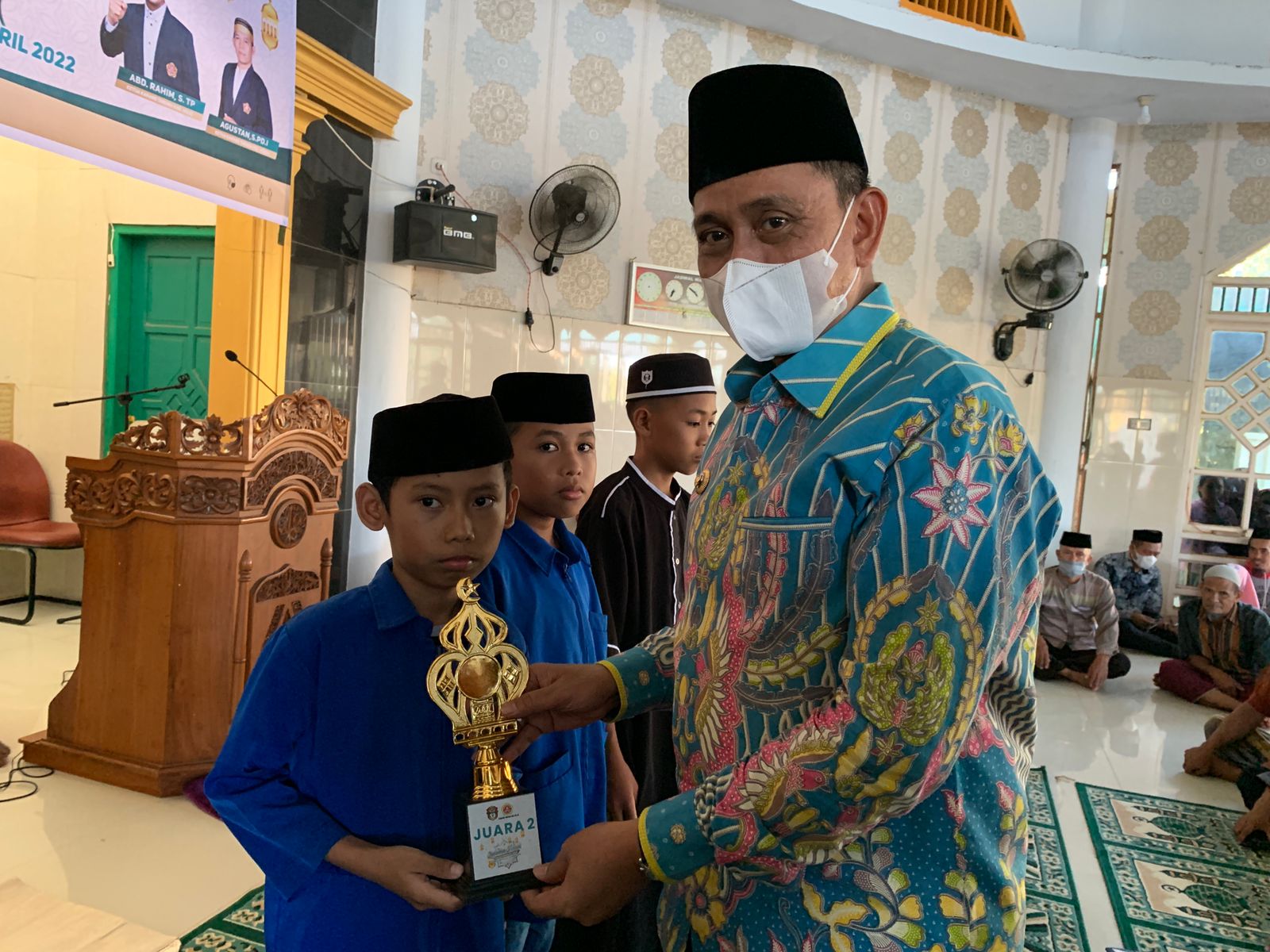 Bertempat di Taman Pengajian Raodhatul Jannah, Desa Awota, Amran dan Sitti Maryam menyerahkan hadiah kepada para pemenang, sekaligus menyemangati peserta.