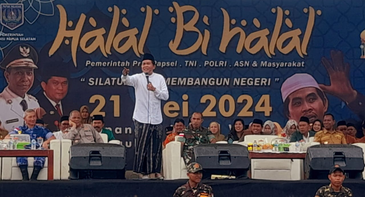 REPUBLIKNEWS.CO.ID, MERAUKE – Ustadz kondang kelahiran Bojonegoro Jawa Timur, K. H. Anwar Zahid membakar semangat umat Muslim di Merauke melalui ceramah tentang pentingnya persatuan di tengah kebinekaan atau keragaman masyarakat Papua Selatan pada momen Halal Bi Halal di lapangan Monumen Kapsul Waktu Merauke, Selasa (21/05/2024).