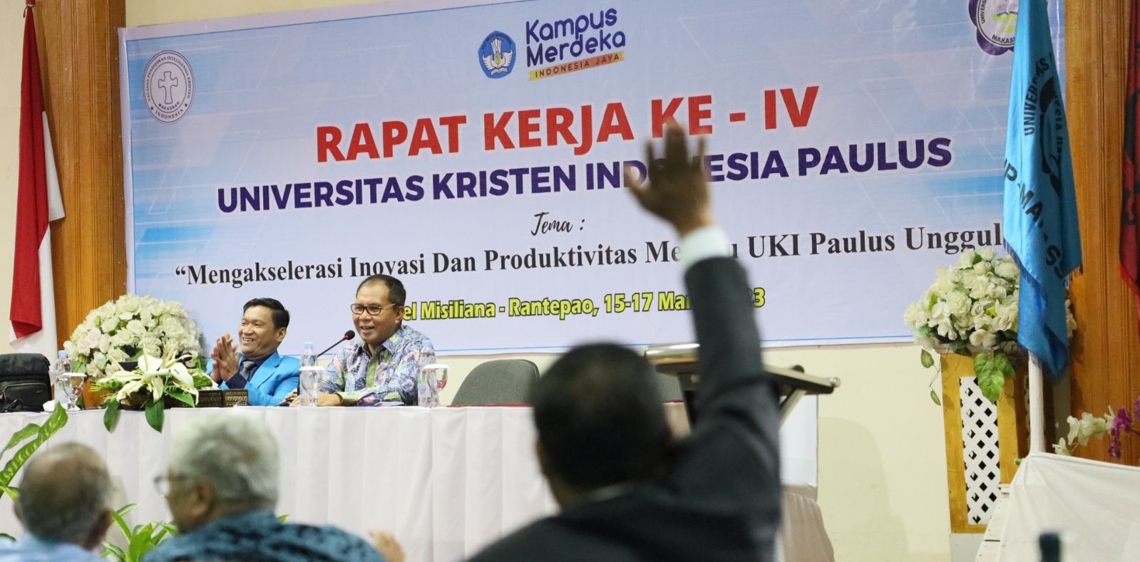 Raker bertajuk ‘Mengakselerasi Inovasi dan Produktivitas Menuju UKI Paulus Unggul’ digelar di Hotel Misiliana, Kecamatan Rantepao Toraja Utara, Kamis (16/3/2023).