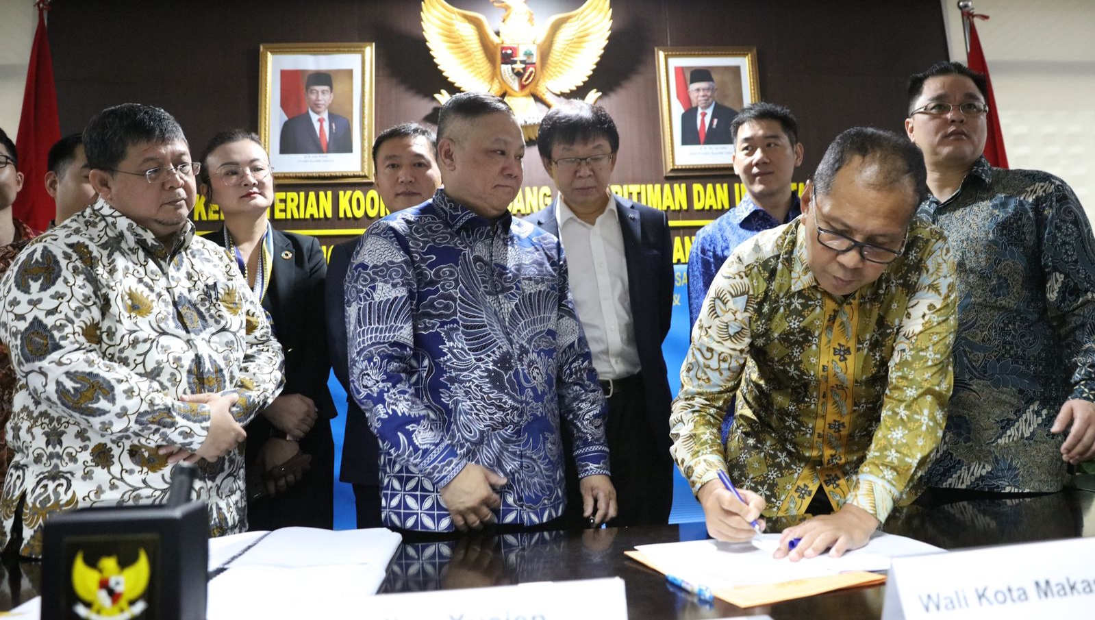 Penandatangan ini dilakukan oleh Wali Kota Makassar, Moh Ramdhan Pomanto bersama, CTO of Sus Shanghai, Jiao Xuejen, serta Direktur Utama PT Sarana Utama Synergy, Yee Wai Kuen dan disaksikan langsung oleh Asisten Deputi Energi Kementerian Koordinator Bidang Kemaritiman dan Investasi, Ridha Yasser, di Kantor Kementerian Kordinator Bidang Kemaritiman dan Investasi RI, Jakarta, Selasa (24/9/2024).