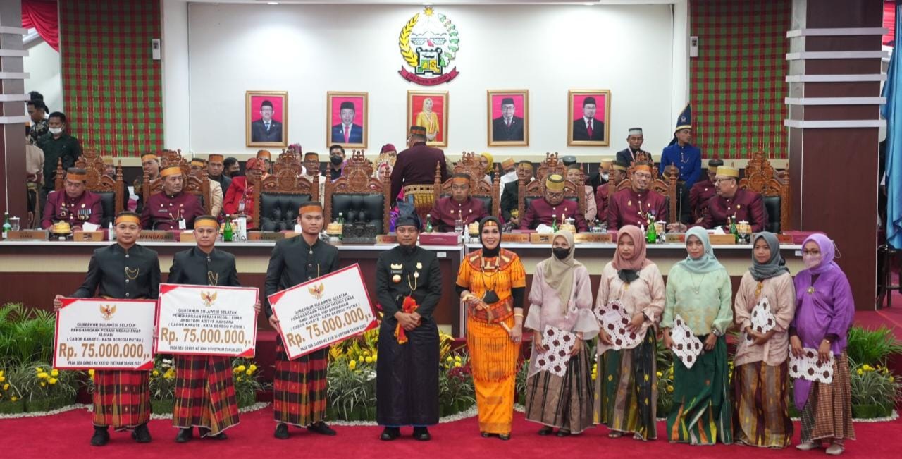 REPUBLIKNEWS.CO.ID, MAKASSAR – Gubernur Sulawesi Selatan Andi Sudirman Sulaiman, menyerahkan bonus kepada atlet asal Sulawesi Selatan yang menyumbangkan medali bagi Tim Indonesia di event olahraga SEA Games 2021 di Vietnam.