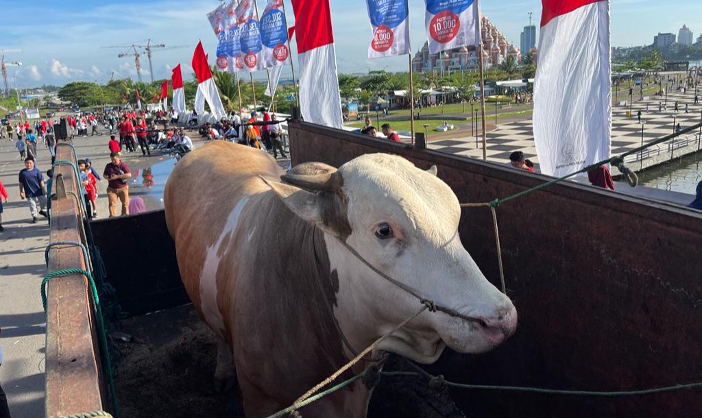 Sapi itu akan kemudian diserahkan kepada panitia Masjid Kubah 99 Asmaul Husna, Kota Makassar.