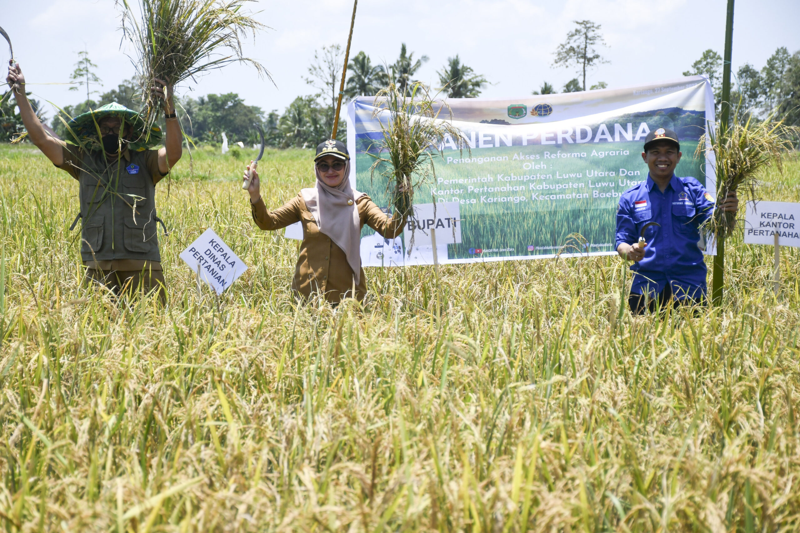 REPUBLIKNEWS.CO.ID,LUWU UTARA — Bupati Luwu Utara, Indah Putri Indriani melakukan panen perdana tanaman padi di Dusun Petaiyan Desa Kariango Kecamatan Baebunta. Selasa (27/9/2022)