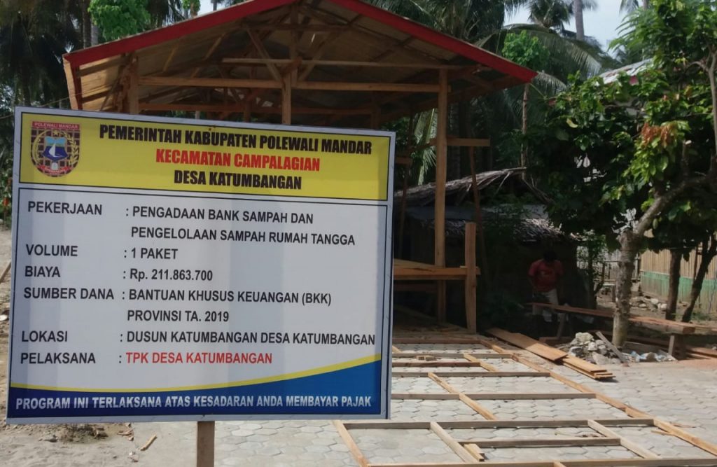 Lewat program MARASA, Desa Katumbangan, Kecamatan Campalagian, Kabupaten Polewali Mandar (Polman), Sulawesi Barat, mendapat Dana bantuan khusus Keuangan Sebesar Rp. 211.863.700. dari Pemerintah Provinsi Sulawesi Barat untuk Pengadaan Bank sampah dan Pengeloalaan Sampah Rumah Tangga.