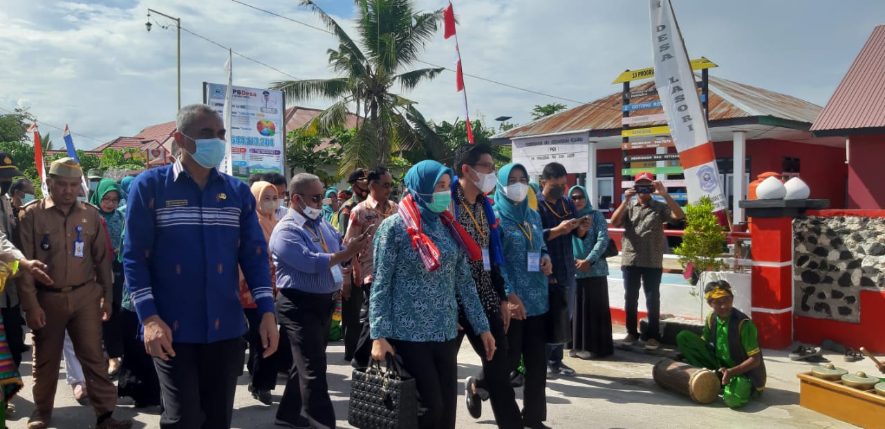 Tim Penilai Lomdeskel tingkat Provinsi Sultra bersama Sekda Buteng Kostantinus Bukide saat mengunjungi Desa Lasori Kecamatan Mawasangka Timur Kabupaten Buteng, Sabtu (02/07/2022).