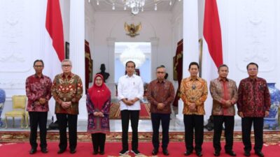 REPUBLIKNEWS.CO.ID, JAKARTA — Presiden Joko Widodo (Jokowi) menerima kedatangan Dewan Komisioner Otoritas Jasa Keuangan (OJK) periode 2017-2022 di Istana Merdeka, Jakarta, Rabu 13 Juli 2022.