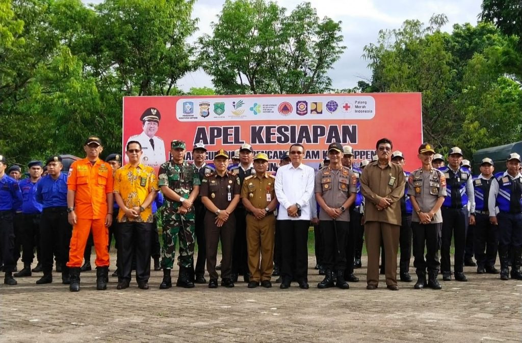 REPUBLIKNEWS.CO.ID, SOPPENG — Pemerintah Kabupaten Soppeng menggelar Apel Kesiapan Penanggulangan Bencana Alam tahun 2020, di Halaman Kantor Bupati Soppeng, Jumat (10/01/2020).