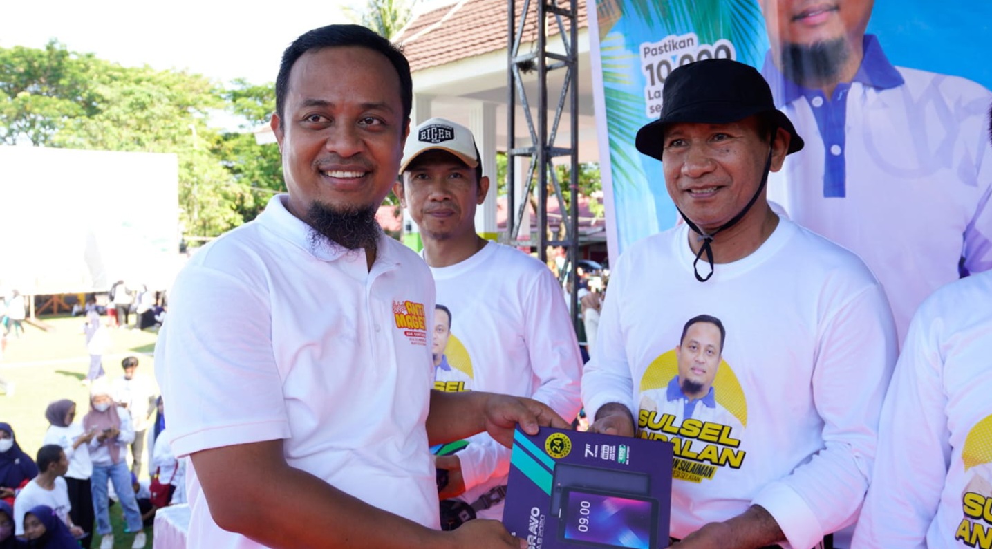 Penyerahan secara simbolis kepada SMA Negeri 1, SMA Negeri 2, SMA Negeri 3, SMA Negeri 4, SMA Negeri 5 dan SMA Negeri 6 Bantaeng di Acara Sulsel Anti Malas Gerak (Anti Mager) Lapangan Seruni, Kamis (08/12/2022).
