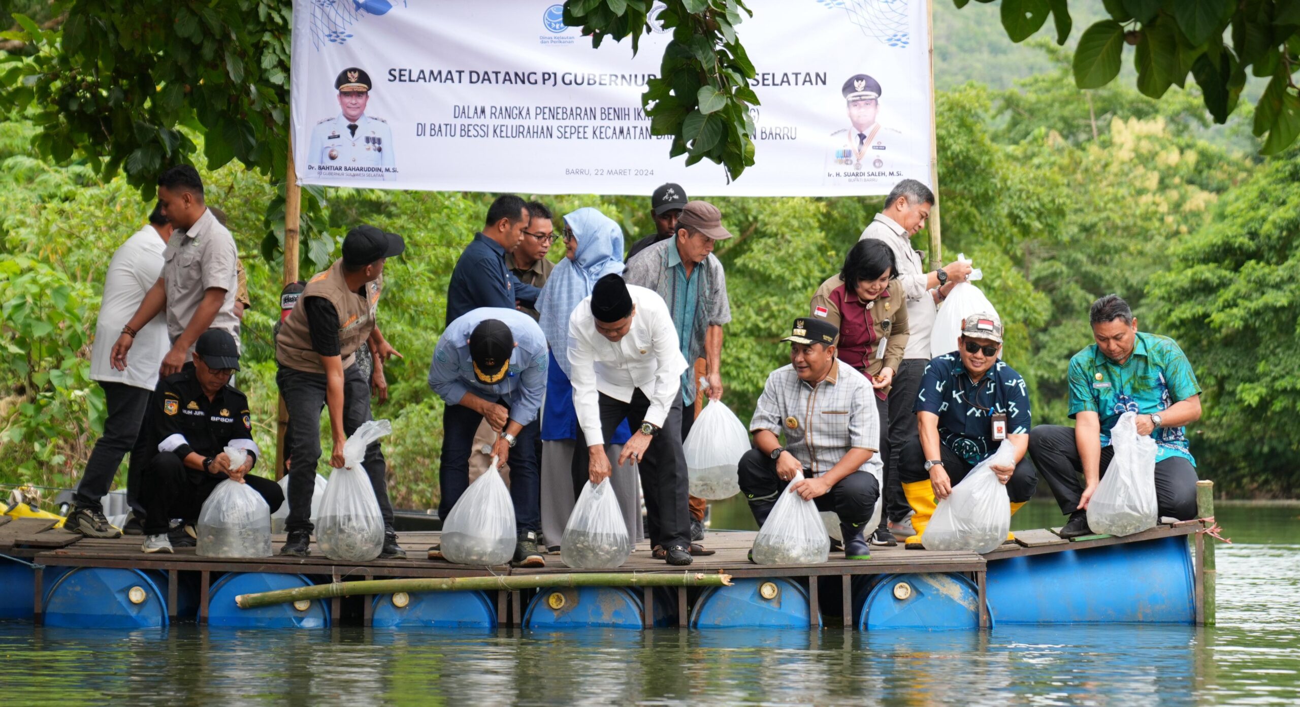 Benih ikan tersebut ditebar Pj Gubernur Bahtiar Baharuddin didampingi Bupati Barru Suardi Saleh, dan jajaran Forkopimda Kabupaten Barru. Selain itu, juga diserahkan bantuan ikan nila kepada dua kelompok budidaya, masing-masing Nepo Youth Fish dan Sipurennu.