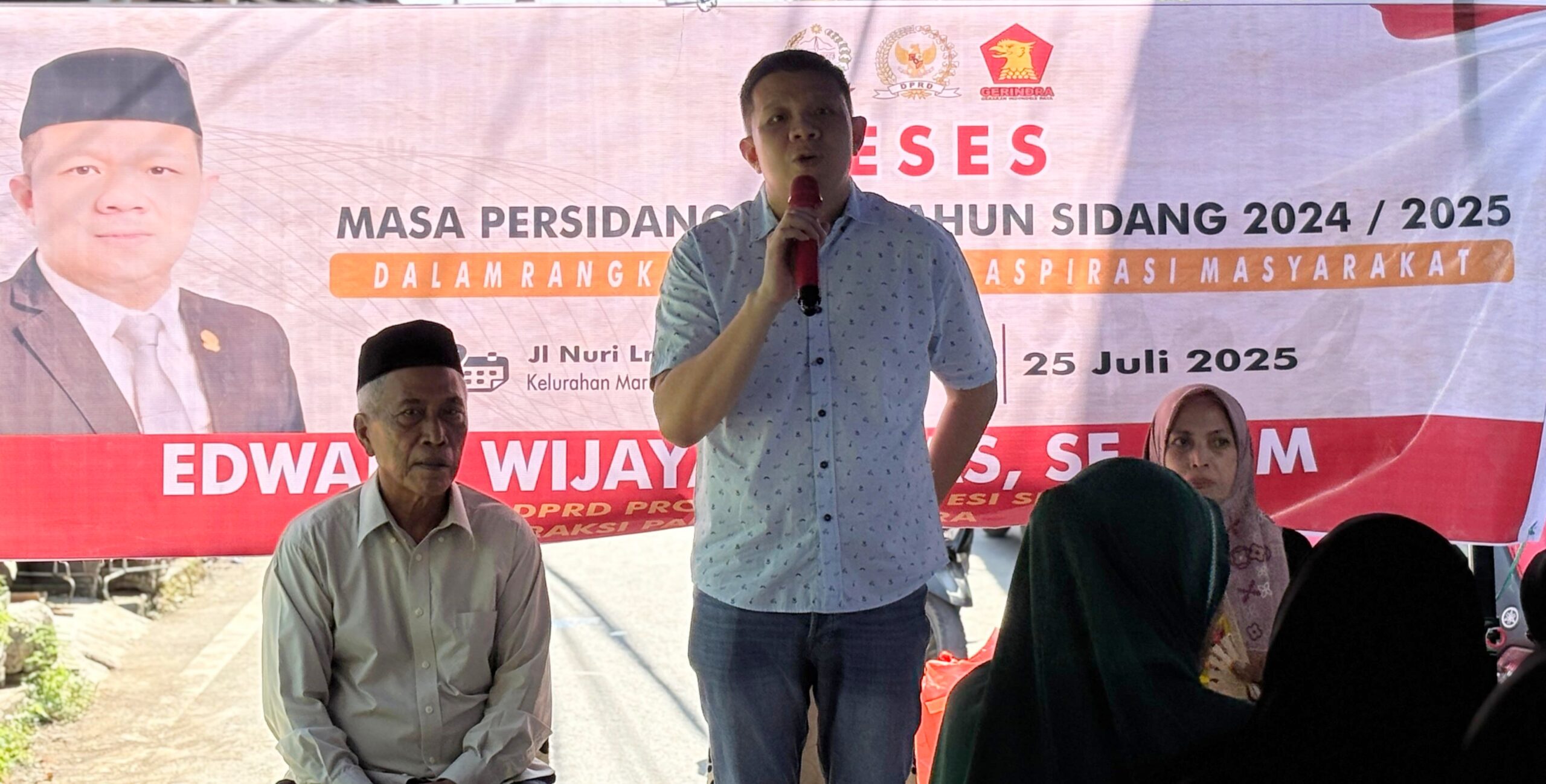 REPUBLIKNEWS.CO.ID, MAKASSAR – Legislator DPRD Sulawesi Selatan, Edward Wijaya Horas menyambangi konstituennya di Jalan Nuri, Kelurahan Mariso, Kecamatan Mariso, Kota Makassar, Jumat (25/7/2025). Kunjungan ini dalam rangka kegiatan reses masa persidangan ketiga tahun anggaran 2024/2025.