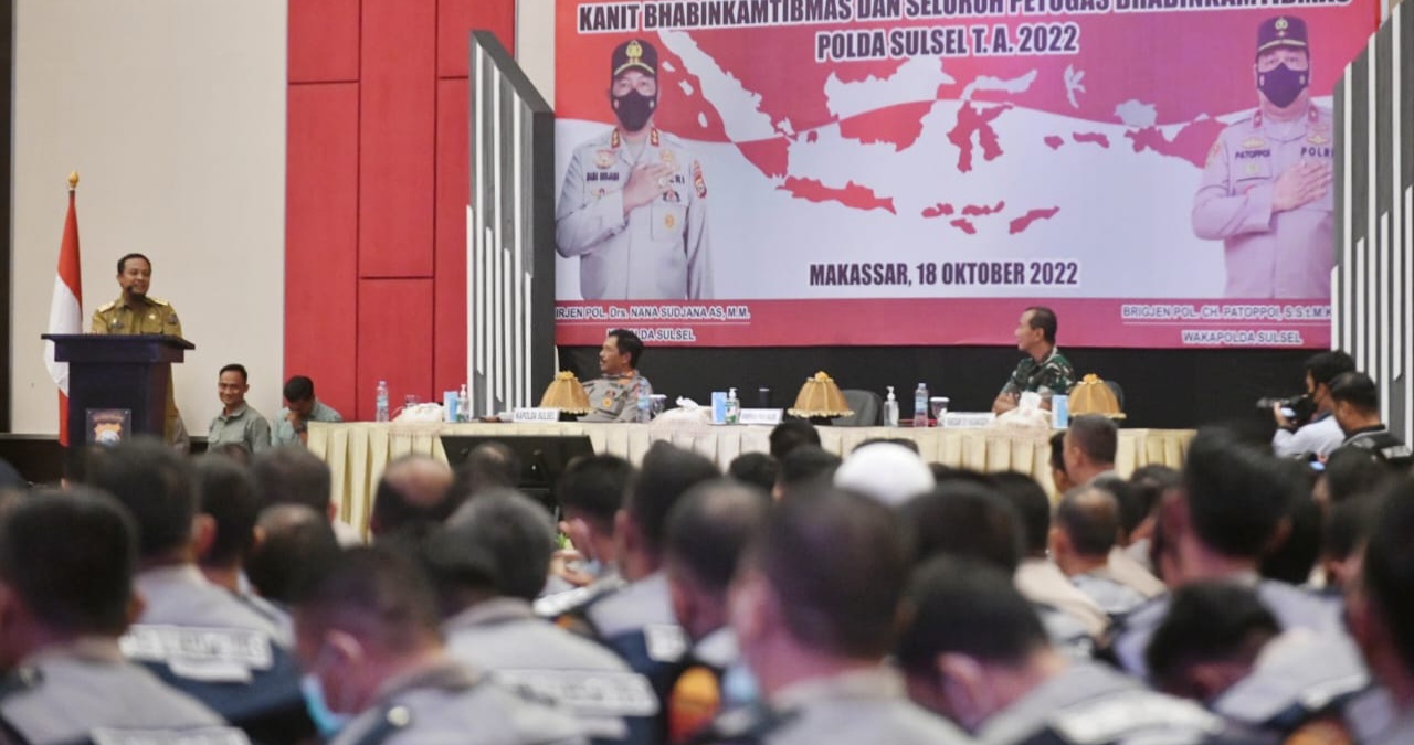 Kapolda Sulsel Irjen Pol Nana Sudjana mengapresiasi atas kehadiran Gubernur Sulsel dan Pangdam XIV Hasanuddin yang memberikan pengarahan kepada apra Bhabinkamtibmas.