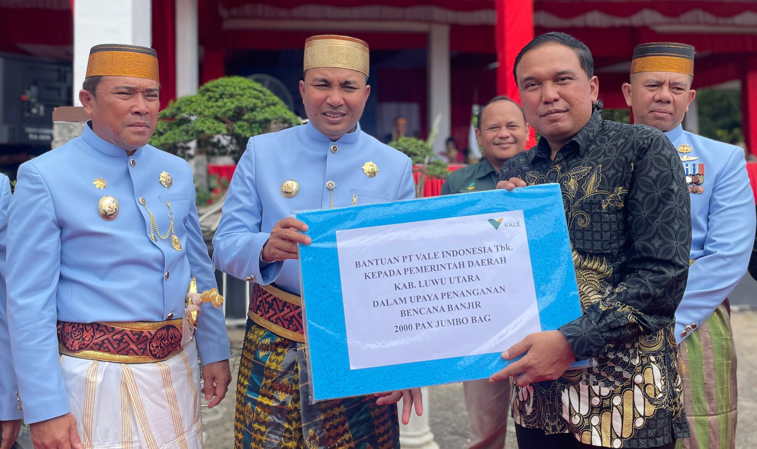 Dalam peringatan Hari Jadi Kabupaten Luwu Utara ke-26 pada Selasa (20/5/2025), PT Vale menyerahkan 2.000 jumbo bag berkapasitas 1 ton untuk mendukung upaya mitigasi bencana banjir yang kerap mengancam masyarakat akibat curah hujan ekstrem.