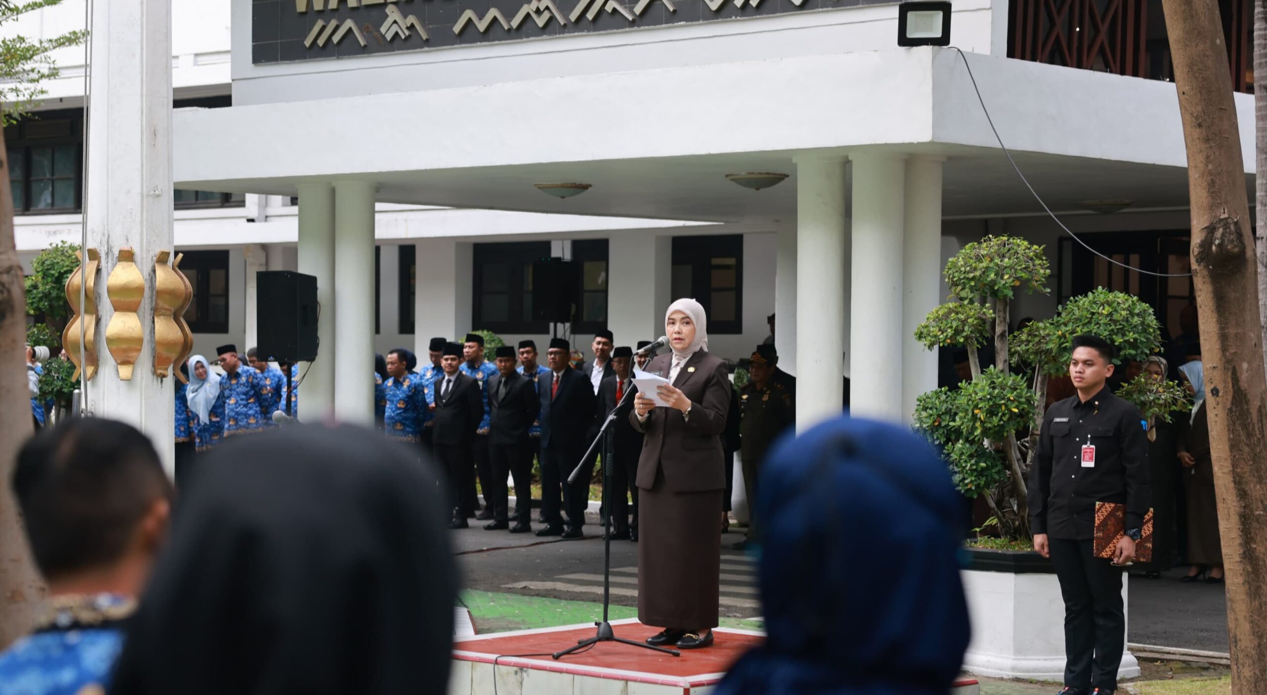 Di hadapan seluruh jajaran Pemkot Makassar, Aliyah juga membacakan sambutan seragam Menteri Komunikasi dan Digital Republik Indonesia (Komdigi RI), Meutya Viada Hafid.