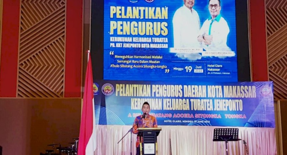 REPUBLIKNEWS.CO.ID, MAKASSAR – Ketua DPRD Kota Makassar, Rudianto Lallo hadir dan turut memberi sambutan pada acara pelantikan pengurus Daerah Kota Makassar Kerukunan Keluarga Turatea (KKT) Jeneponto di Hotel Claro, Makassar, Minggu (19/6/2022).