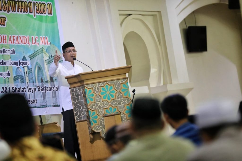 Hal ini disampaikan saat memberi sambutan pada Isra’ Miraj yang diselenggarakan di Mesjid Raya Makassar, Jumat (05/04/2019) kemarin.