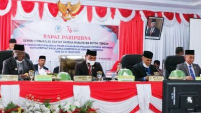 REPUBLIKNEWS.CO.ID, BUTENG – Bupati Buton Tengah (Buteng) H. Samahuddin, SE menghadiri Rapat Paripurna dalam rangka memperingati Hari Ulang Tahun (HUT) Republik Indonesia ke-76 di Kantor Dewan Perwakilan Rakyat (DPRD) Buteng, Senin (16/08/2021).