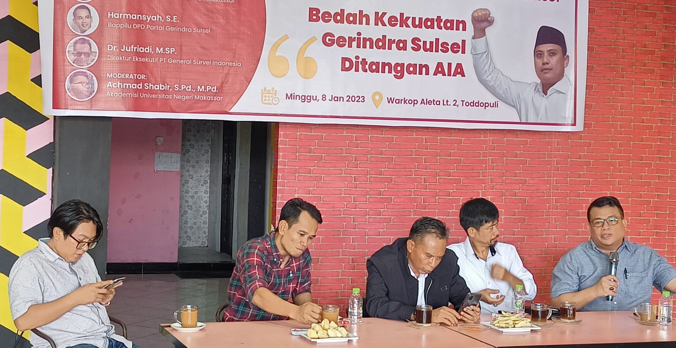 Dalam diskusi bertema ‘Bedah Kekuatan Gerindra Sulsel Ditangan AIA’ itu, Direktur Eksekutif PT Indeks Politica Indonesia, Suwadi Idris Amir menganggap target 15 kursi DPRD Sulsel dan 5 kursi DPR RI sebagai target yang rasional dan berpotensi besar bakal dicapai oleh Partai Gerindra Sulsel dengan mudah dibawah kepemimpinan AIA.