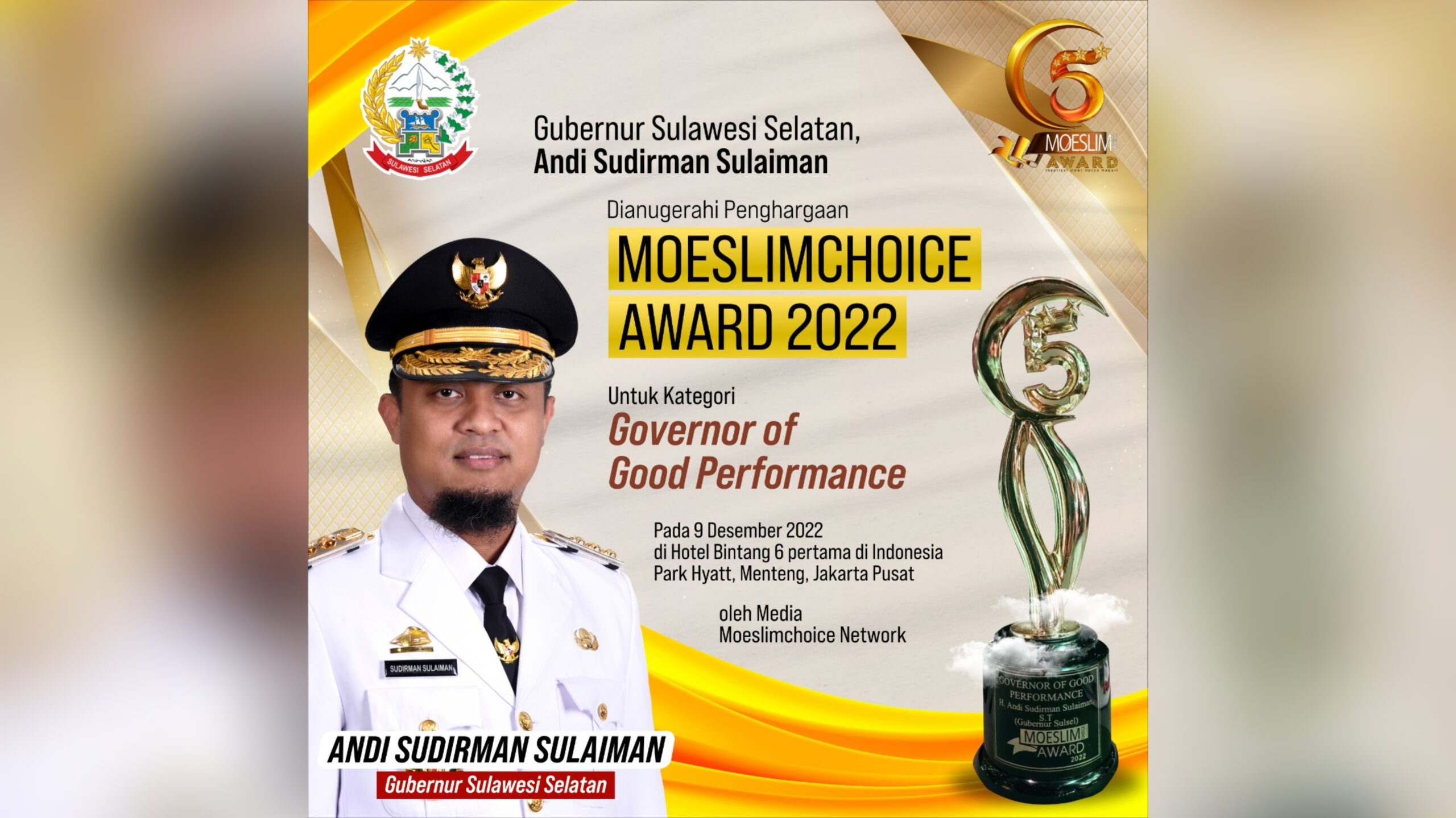 “Alhamdulillah, dianugerahi penghargaan Moeslimchoice Award 2022 untuk kategori Governor of Good Performance. Capaian ini tidak lepas dari teamwork yang kita bangun bersama jajaran lingkup Pemprov maupun Kabupaten/Kota di Sulsel,” kata Andi Sudirman.