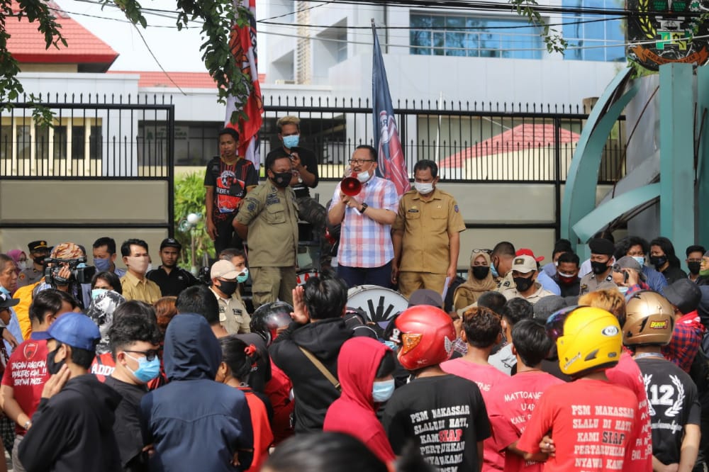 Suporter PSM yang mayoritas berasal dari kelompok Red Gank itu ditemui langsung oleh Wakil Ketua DPRD Sulsel, Ni’matullah Erbe. Ulla, panggilan akrabnya, menyampaikan terima kasih kepada para suporter yang telah menunjukkan kepeduliannya terhadap nasib pembangunan Stadion Mattoanging tersebut.